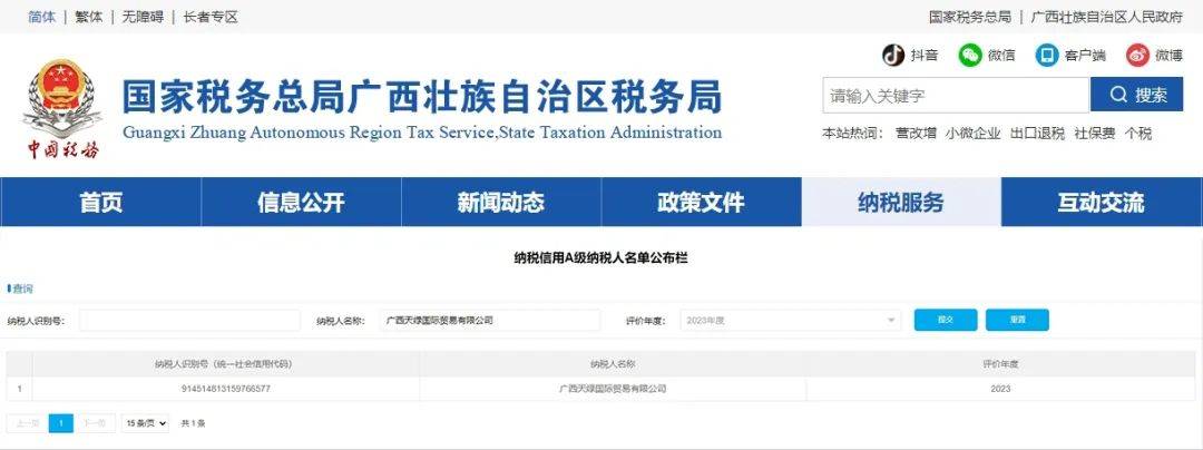 近日,國(guó)家稅務(wù)總局公布了2023年度納稅信用評(píng)價(jià)結(jié)果,天緣綠集團(tuán)母公司——廣西天緣綠生物科技有限公司及子公司——廣西天綠國(guó)際貿(mào)易有限公司憑借卓越的納稅信用表現(xiàn),雙雙獲評(píng)“2023年度納稅信用A級(jí)納稅人”。