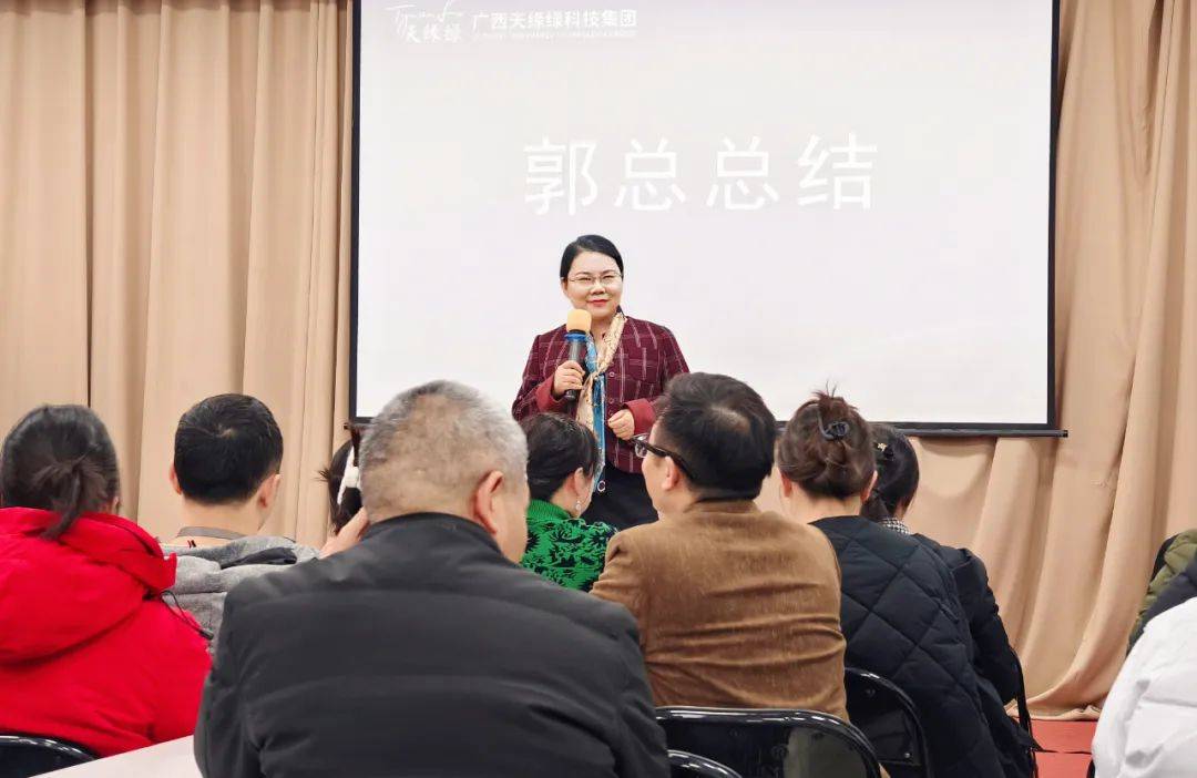 天緣綠集團(tuán)運(yùn)營(yíng)總裁郭陽女士發(fā)表了指導(dǎo)總結(jié)講話,對(duì)全體員工提出了殷切希望和明確要求。郭陽總裁指出,2024年已經(jīng)結(jié)束,無論結(jié)果如何,都在今天畫上了句號(hào),讓我們以全新的姿態(tài)迎接2025年的挑戰(zhàn)。她強(qiáng)調(diào),自律程度決定成長(zhǎng)高度,希望大家在新的一年,從思維和行為上都有所提升,真正實(shí)現(xiàn)自我超越。