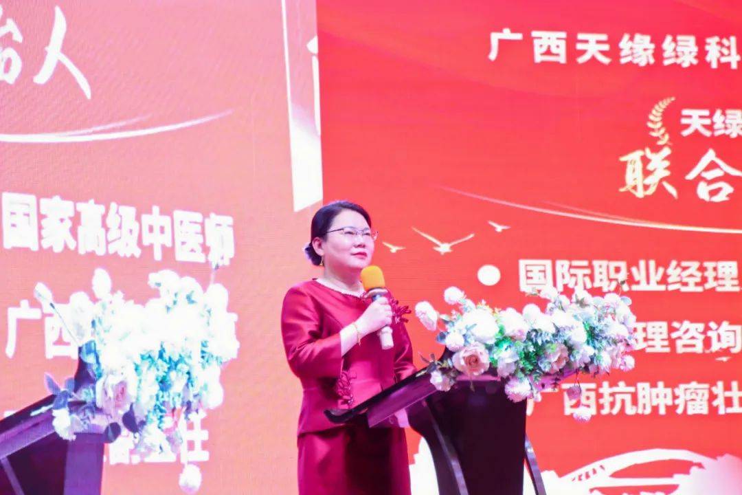 慶典現(xiàn)場,燈光璀璨,嘉賓如云。廣西天緣綠科技集團名譽董事長、天緣綠事業(yè)領(lǐng)航人、天綠元素品牌創(chuàng)始人李玉強 先生, 廣西天緣綠科技集團運營總裁、天綠元素品牌聯(lián)合創(chuàng)始人、廣西藥學(xué)會理事、廣西抗腫瘤壯藥專業(yè)委員會副主任郭陽 女士,藥學(xué)博士后導(dǎo)師、廣西藥學(xué)會名譽理事長劉華鋼 博士,廣西醫(yī)藥商會執(zhí)行會長兼黨委書記黃建國 先生,北京康芬中醫(yī)藥研究院首席科學(xué)家、北相學(xué)派生物學(xué)家馮勁松 教授,廣西區(qū)市場監(jiān)管局主管的廣西打假扶優(yōu)信息協(xié)會古平仁 會長,南寧市企業(yè)和企業(yè)家聯(lián)合會陳志聰 會長等領(lǐng)導(dǎo)和嘉賓、集團全體員工及經(jīng)銷商出席慶典,共同見證并慶祝這一榮耀時刻。