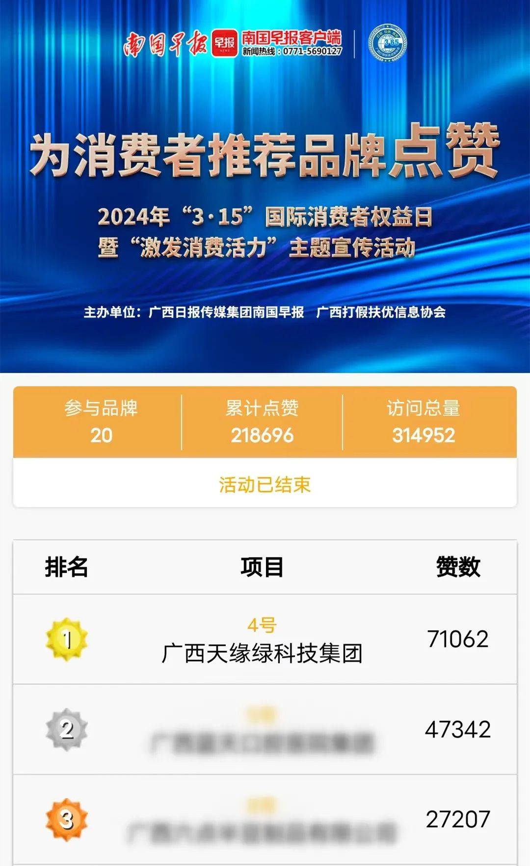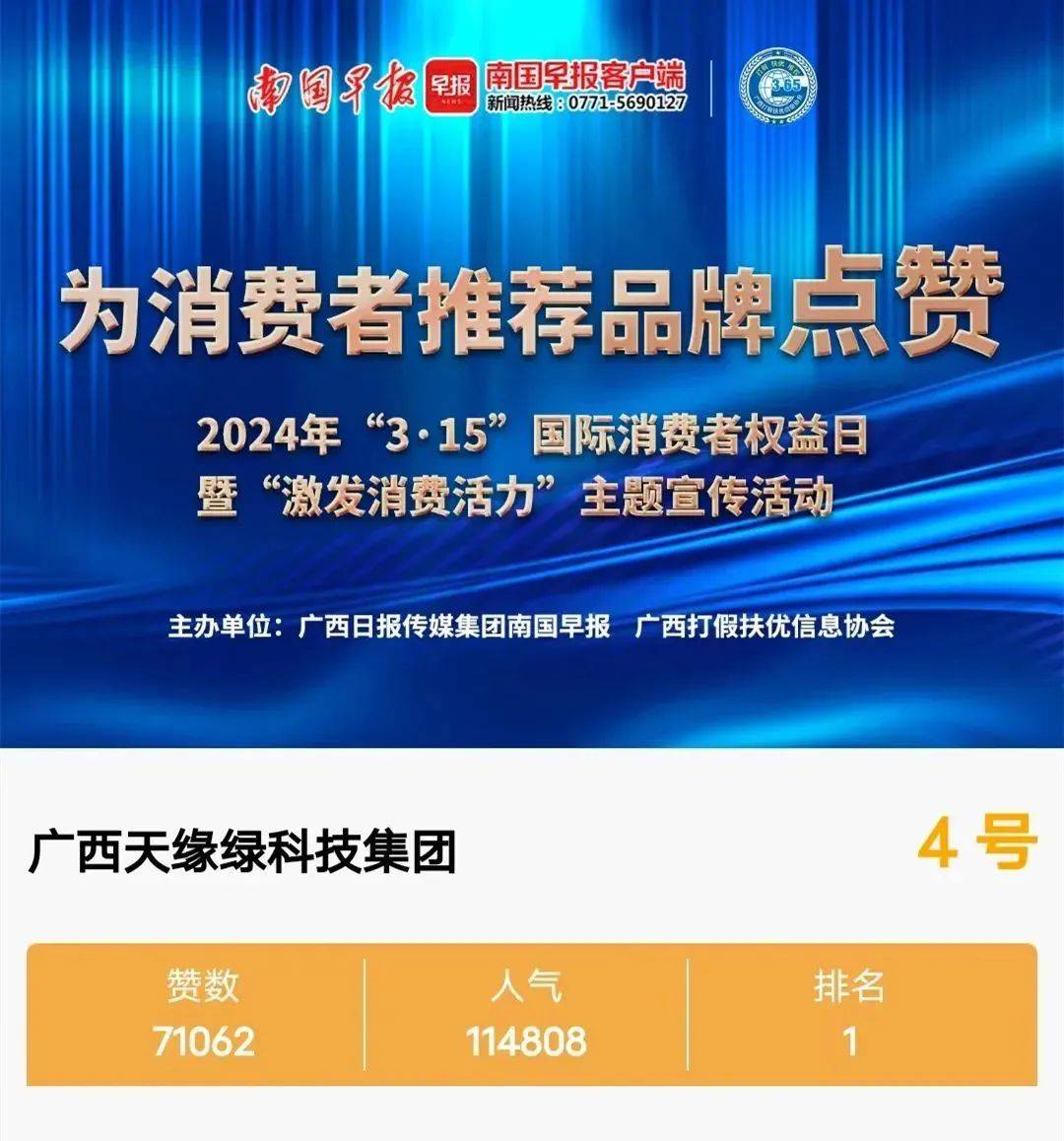 喜報(bào)!廣西天緣綠科技集團(tuán)榮登“消費(fèi)者推薦品牌”榜首