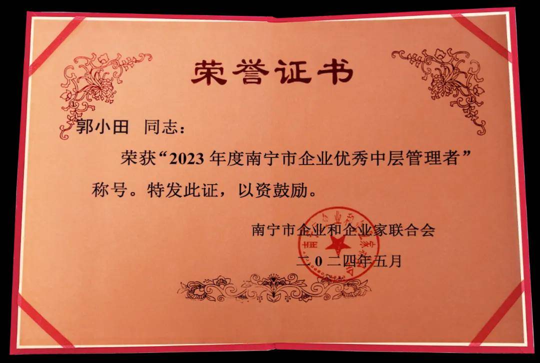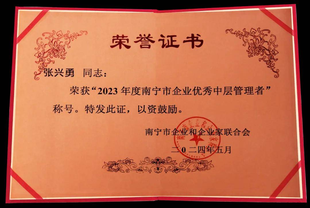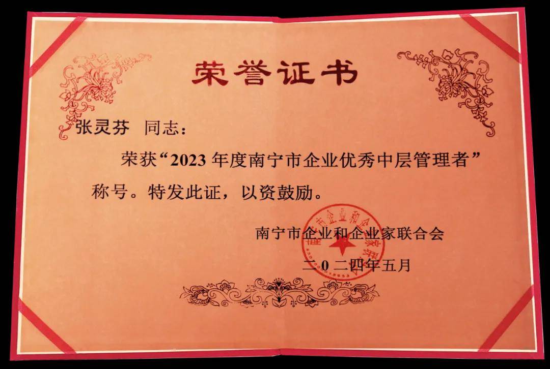 喜報!天緣綠集團多位中層管理者榮獲“2023年度南寧市企業(yè)優(yōu)秀中層管理者”