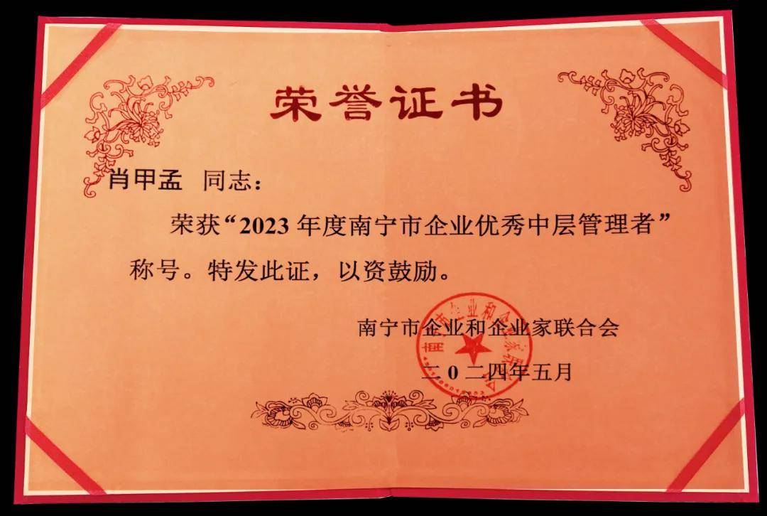 多年來,廣西天緣綠科技集團憑借其卓越的技術實力和市場表現(xiàn),贏得了業(yè)界的廣泛認可,陸續(xù)獲得國家高新技術企業(yè)、廣西知識產權優(yōu)勢企業(yè)、南寧市專精特新企業(yè)、經開區(qū)納稅A級大戶等榮譽。同時,集團一直高度重視中層管理者的培養(yǎng)和發(fā)展,通過建立完善的培訓機制和激勵機制,為中層管理者提供了廣闊的成長空間和職業(yè)發(fā)展平臺。此次榮獲“2023年度南寧市企業(yè)優(yōu)秀中層管理者”榮譽稱號,不僅是對中層管理者個人能力的認可,更是對集團整體管理水平的高度肯定。