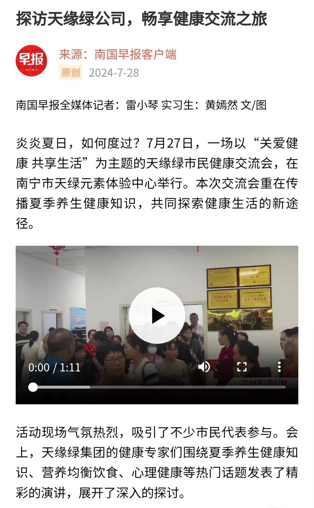 引爆媒體熱潮!天緣綠健康交流會(huì)獲南國(guó)早報(bào)等三十多個(gè)媒體報(bào)道